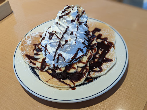 A delicious taste of Hawaii in Harborland, albeit extremely busy with long lines. We had to wait in line for like 20 minutes before we actually got in, and to my surprise, there were tons of empty seats both inside and outside the store. I guess they weren't allowed to let too many people enter the place because of the pandemic situation, but I've seen tons of places such as Starbucks and whatnot being absolutely packed with people and no one bats an eye. Anyhow, it was excruciating to wait in line, but at least it was for a good and delicious cause. We ordered the chocolate banana pancakes topped with a mountain of whipped cream alongside a burger, and a breakfast plate with bacon, eggs and potatoes. Everything was tasty, fresh and filling, although a burger was a tad bit on the smaller side so I was glad we had the pancakes to...