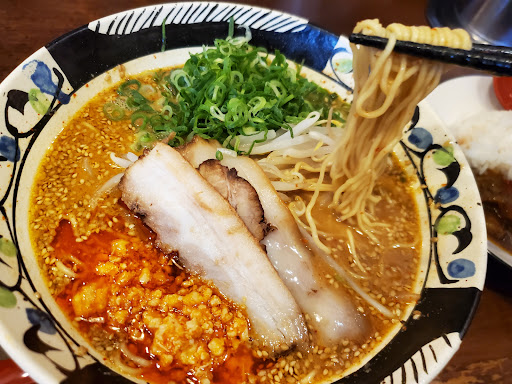 昼に会社の仲間と昼食で利用させていただきました。 始めての来店でしたが、ラーメンの種類も多くいろいろと目移りする内容でしたので、メニューの最初に書いてあるし、私は辛党なので「うまみそらーめん」を頼んでみました。辛さはもちろん「ちょ~辛」です。 海苔、ニンニク、辛にらが無料で利用できるのは良かったのですが、ニンニクが小さすぎて潰しにくかったです。 ちょ~辛との事ですが、出てきたラーメンは辛そうに見えず、スープを一口飲んでも、こんなものかと思うほどの味でしたが、食べ進んでいくと段々辛さを感じるようになり刺激が程よくなってきて、私の好みに合い大変美味しかったです。 1番柔いのがやわ麵しかなかったのですが、バリやわでとお願いしたのに、私にとってはやわでもなく普通麺程の硬さでしたので、その点がかなりマイナスでした。 硬さを聞くなら、客の好みに合わせて欲しい、ただふりで聞く程度なら聞かない方がまし。いつも博多でバリやわでと頼んだ時の柔らかさを期待してた分、がっかりでした。 支払いも現金以外でpaypayなどのQR決済もしっかりと使えました。 JAFの会員だと50円引きのサービスもありがたかったです。 味は良かったので、やわ麵で出てきていたら☆5でしたが、普...
