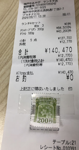 To make matters worse, the final bill was not what we expected. We ended up paying „140,470 (around $1,000 USD) for an hour of poor service from someone who wasnât professional or welcoming to foreign guests. The service barely felt like it was worth $100, let alone $1,000. I had ordered two types of meat from the menu: 300g Kobe Prime Beef Sirloin („37,000) and 180g Kobe Prime Beef Fillet („43,200), which should have totaled around „80200.