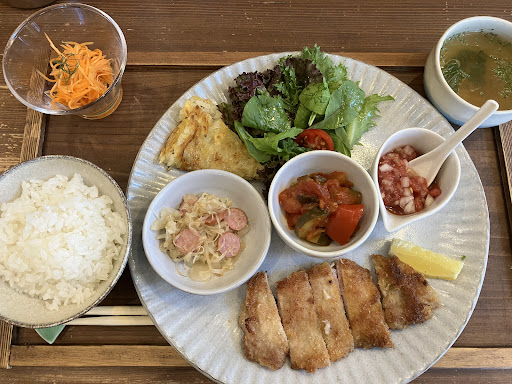 近くで12時から予定があったので、11時から営業しているこちらを訪問。 まず、入口で店員に「食事なんですけど」と確認。 席に案内され、メニューを渡され、月替わりメニュー「ポークカツレツプレート¥1,500」一択です。ドリンク付ですが、ワンプレートで割高に見えます。 ボリュームがあると信じて、急いでいるのでドリンク決めて早々に注文。 注文しおわった時点で「ランチは11時半~なんです」っておい!席に案内する前に言えよ!現在11時10分。 躊躇していると、提供が11時半~という意味合いで早めに用意できるかも、と言うし、今から別の店探して行っても同じくらいになるだろうし、急いだら間に合うだろうとしぶしぶ承諾。 はい、提供されたのは11時50分。40分待たされました。その間のストレスはかなりのもんです。予定も半時間ずらしてもらいましたが、ずらしてもらえなかったら店出ていました。 提供される直前、隣の予約席に常連が来店。店員も名前で呼んでいます。その人がえずくくらいの悪臭を漂わせていて、それも食事中だったら残して店出ています。 提供前だったので空いている離れた席に移動。空いてなかったらこれも店出ていましたね。 いや、常連やったら臭いの分かっているやろ。予約席隅っこにするとか考えろよ。 さて、やっとプレート来ましたが、厨房からマスク無しのスタッフが出てきて、料理覗きこみながら、指も1センチ位まで近づけて1品ずつ説明。急いでるし、指と顔の位置が不快で頭に話入りません。 とりあえず食べ始めましたが、メインのポークカツレツは薄っぺらく衣いれても60g位。 他の小鉢もサラダにのっかったりして待たせたわりには雑な置き方。 で、説明必要?ていうくらい、家庭でできそうな普通の小鉢。 とりあえず ここまで不快な出来事が連発で起きるとは。 タ...