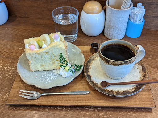 シフォンケーキもふわっふわで軽く綿菓子のごとく消えます・・・ 少し濃いめのアイス珈琲も好みで、良く合います❤