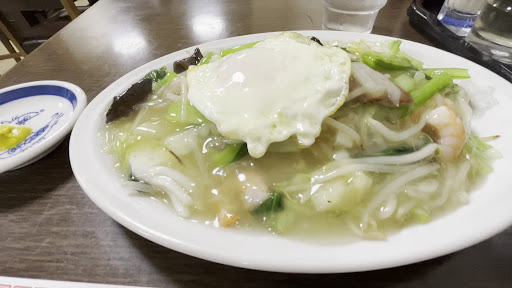 Read moreここは中華カレーが定番で人気のお店。お腹ペコペコでお邪魔したのは土曜日朝11時、開店直後。私は前回はカレーだったので今回は五目焼きそば、一緒に行った連れは中華カレーを注文しました。五目焼きそばの時は、辛子が必要か不要か、店員さんに尋ねられます。 中華は一般的には早く出来上がる物が多いですが、ここも炒め物とカレーだったので、かなり素早く出来上がりました。お腹空いていたので、大助かりです。 五目焼きそばは、しつこくなくアッサリしていて、優しい味。飽きてきたら、途中から味変するために辛子という物があるんですが、飽きないなぁ…いくらでも食べられてしまいそう。 カレーを食べていた連れは、顔から汗を噴き出していました。辛い、というわけではないないのですが「カレールー」でなく何しろ「カレー粉」ですから、スパイスが効いていて… カレーは、玉葱が甘くてシャキシャキしていて、良いアクセントになっています。連れは「また来たくなる」と言っており、好評のようでした。昔懐かし昭和の頃のお婆ちゃん家で出された、水っぽくなってしまったら途中から片栗粉を足してトロミを付けた、ノスタルジックなカレーに似ているような気がします。 平日お昼に行った時は男性の一人客が多く、それなりにザワついていましたが、今日は私達だけで、シーンとしていました。欲を言うと、BGMが欲...