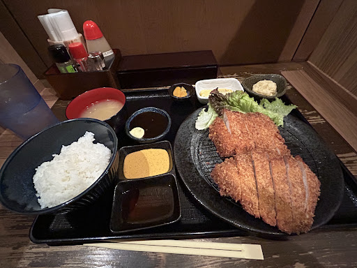 お昼時にカツ丼で有名ですが、定食はライスおかわり無料とのことでしたので、かつとじ定食にしてみました。 かつとじと言うのは簡単に言えば、カツ丼のアタマが分かれで提供されるスタイル。 最初はかつとじをライスのおかずにいただきます。 こちらのトンカツは中はほんのりレアっぽさが残り、衣はカラッと硬め。そのコントラストがいい食感を生み出して、一食の満足度を高めます。 そして、かつとじにして良かった事は、こちらの煮汁はかなり甘めのセッティングでしたので、ライスが煮汁を吸ってブヨブヨライスにならなくて最後までしっかり米の粒状感を楽しめました。 私の場合、この甘みが強いタイプのツユは好みでなかったのでこれは正解でした。 そして、ご飯を一回おかわりをいただき、かつとじの頭をお乗せにして、カツ丼としていただきました! 定食にすると味噌汁や小鉢なんかもついて、ライスおかわり自由となりますので、ボリュームのあるランチを希望されるなら結構お...
