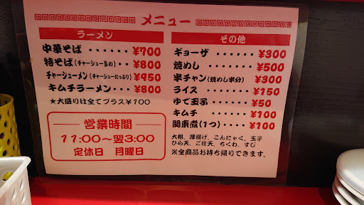 こちらの店では和歌山ラーメンの定番のおでんはあるが、ゆで卵や早寿司はない。その代わり炒飯がある。