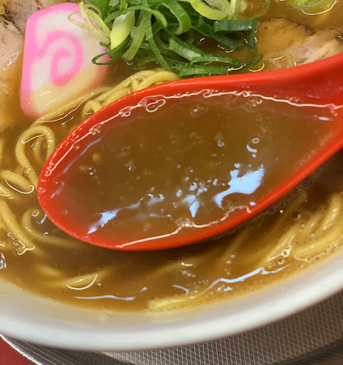 【スープ】 見た目はしっかり醤油色だけど、レンゲを入れるとトロッとした濃厚さを感じるスープ。 醤油のキレもあるし、豚骨のコクも同じくらい主張してくるのに、後味は意外とマイルドで飲みやすいんです。