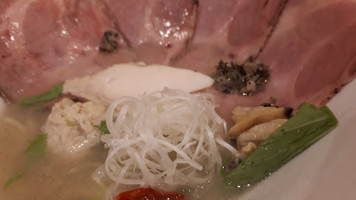 〇具材 ハマグリ、つくね、チャーシュー、鶏チャーシュー、煮卵、ドライトマトと、驚くほどのバリエーション。 個人的にはここの低温調理されたチャーシューが凝縮された旨味と、適度なしっとり具合で好みだった。 半玉のっている煮玉子の存在を知らずに頼んだ、ホールの「煮玉子」も、ホールで食べる事で分かる旨味があり美味しかった。 ドライトマトの狙いは理解できたが、個人的には不要に感じた。