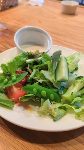 ◯サラダは、豆が可愛く盛り付けられていて、ドレッシングが優しい味で美味しい!