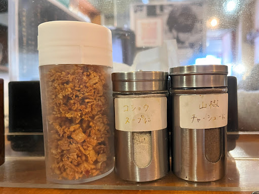 クリーミーで濃厚だけど、豚骨より罪悪感は低めで(笑)あっさり・・スープも楽しめる 最後は出してもらったスープで割って、フライドオニオン、黒胡椒で引き締めて余韻を楽しみました 美味しかったぁ😍