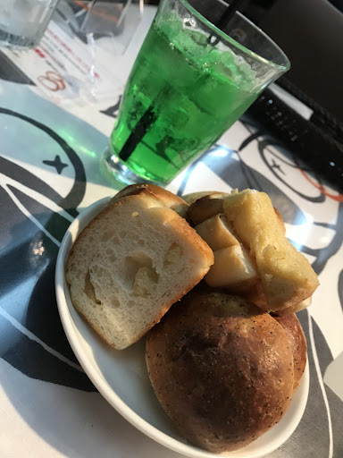 数種類のパスタ+セットをつけてもリーズナブル コスパ★4 ・パン食べ放題 ・ドリンク1杯とパン食べ放題 それに立地の割に68席と多め◯ ベビーカーも畳まなくても置けて、子供用の食器や子供椅子も有り◯ 立地・店内とも★3 子供をあやしており、冷めてから食べたがコシがあり、普通に美味しい★3