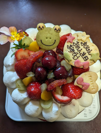 Read moreおじいちゃんの誕生日に初めてオーダーさせて頂きました。 ケーキを見た瞬間、娘と可愛い〜しか声が出ませんでした。 ケーキはもちろんお誕生日プレートと共にカエルのクッキーがありとても気に入りました。 味もとっても美味しかったです。 次回は是非チョコ味にしてみたいです。 ...