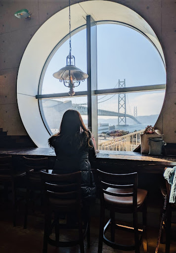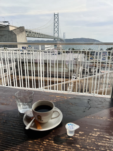 店内に入ってみると、店外からは想像できない広さにビックリ。 店内に一つしかない丸い窓を見て、 (カップル👫で訪れたら最高でしょうね🥰) あの席に座りたい😆‼️と一気に気持ちが高揚し、空いていたのですぐに座る事が出来ました。 カウンター越しに見える明石海峡、 最高でした✨