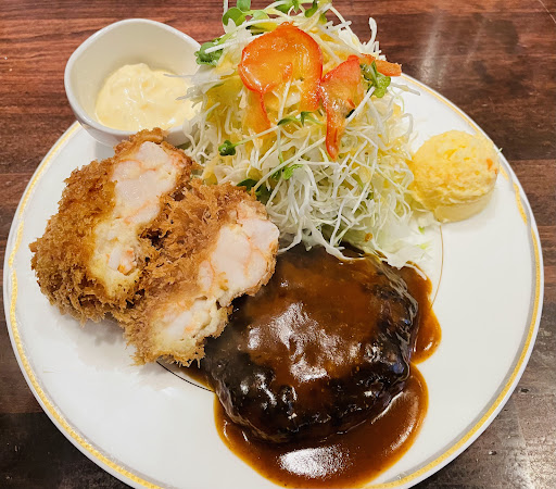 A popular place with the locals since the quality of the food is quite high and the prices are very affordable and fair. We went during the lunch time at 11 and as soon as they opened, the restaurant got packed very quickly. The look and feel of the restaurant is also pretty laid back and relaxing and you'll be surrounded by locals who are enjoying the food and chatting, creating a very friendly atmosphere. As for the food, they had two different sets as part of the lunch menu, both very reasonably priced at 880¥ and 1000¥, and we ordered both.The lunch set also came with rice and miso soup and you can choose the size of the rice from small, medium and large. The mix fries set included menchi katsu, chicken katsu, shrimp tempura, cream croquet and cabbage salad while the Hamburg set included a hamburg steak, chicken katsu and cabbage salad. Presentation of the food was pleasant and appetizing as evident from the attached pictures and as for the taste, it was a very good although not memorable meal, as is the case with most restaurants which serve Japanese-style western food. Everything was tender, fresh and crispy however the hamburg steak and chicken katsu were a bit bland despite being very tender and juicy. Overall it's a very good restaurant which offers great quality for a cheap price and I'm definitely coming back soon to try the dinner menu and other menu items. The only downside can be the lack of English on the menu which can be hard if you don't...