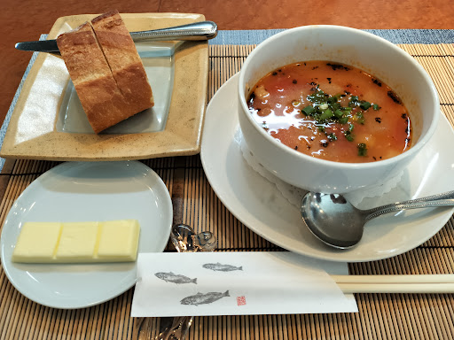 海鮮でフランス料理が? と思われる方は、明石淡路の 新鮮素材を絶妙なソース (毎回添えてあるフランスパンにて拭う)で 組み合わせ豊かに、色とりどりなコースとして仕立てる技を、楽しみに行くお店と思って頂けると幸いです。