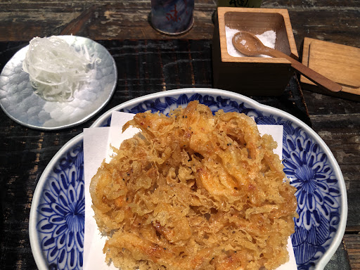 Ordered the Sakura shrimp tempura with hot soba (JPY 1,500). Soba is slightly chewy and silky smooth. The dashi broth really smoky and light with a bit of Yuzu peel and mitsuba. Delicious, but on the expensive side. The tempura is really crispy and light, but was saturated with too much oil for my liking.