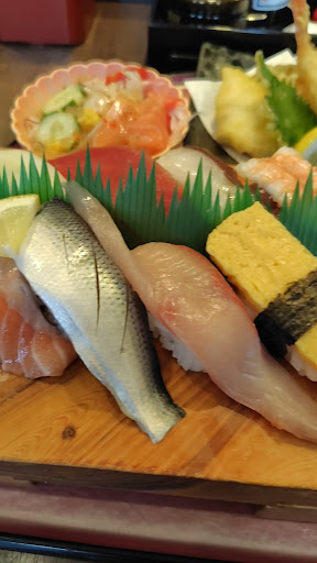 *新おすすめランチ ¥1100税込 (寿司8貫、天ぷら、サラダ、汁物、ミニデザート付き)