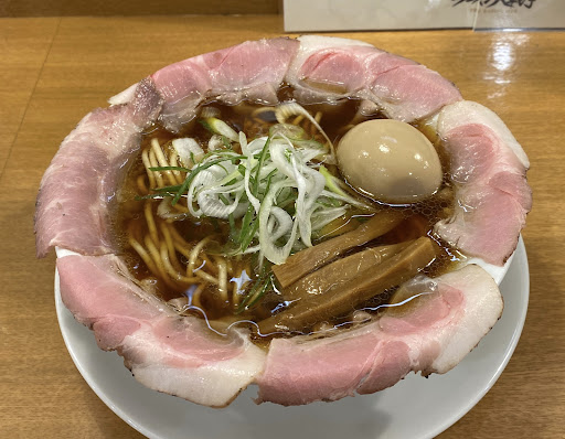 Read more本日のランチは、ラーメン大戦争 三宮店さんへ。前日まで洋食の口でしたが、起きたらラーメン🍜でした笑 人類みな麺類で有名ですね! 三宮に出来た時は、直ぐに並んで食べましたね。それ以来の訪問です。 前回は、凄く並んでましたが行列(ノД`)シクシク直ぐに入店出来ました。カウンターへ通され、メニューとにらめっこ💦 夏限定も気になりましたが、美味しいスープが飲みたくてピストルを注文。チャーシューが1枚〜5枚で選べます。値段は変わりませんので、勿論5枚で✨半熟卵もトッピング。さらにセットにして一口餃子で。勿論生ビール🍺も! 相変わらず音楽ガンガン鳴ってますねー 店内に製麺所もあり、ちょうど麺を打っていました。麺打ちを眺めていたら、ラーメンが到着。綺麗なラーメンですね🍜 まずはスープを一口。うーん名古屋コーチンと貝出汁の旨味に醤油の旨味が口の中に広がります。美味いです!やっぱり飲んじゃう笑 麺は、全粒粉の中太麺でモチモチしていて喉越し良く美味しい麺です。チャーシューは、レアで柔らかさと旨味のバランスが良いです。 レアが気になる方は、スープに入れて調整して下さいね。半熟卵は今回は火が通り過ぎてましたね💦美味しさに箸が進み、気づけば一口餃子が着く前にラーメン食べきってしまった笑 でも大丈夫です!替え玉が半玉が無料なんです! 替え玉を注文するとちょうど一口餃子が🥟 小ぶりで薄皮ですが、餡がギュッと詰まっていて肉汁ジュワ~の美味しい餃子です。ビールが進みますね。半玉も綺麗に食べきるとスープほぼなしでし...