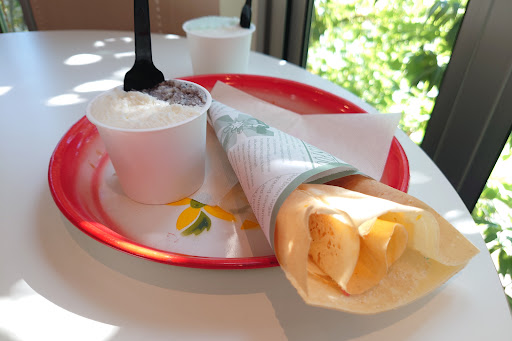 Read more昨日娘と訪問。 娘はミックスフルーツ練乳クレープとコーラ、ジェラート追加(+150円)でチョコ。私はモッツァレラトマトサラダクレープとアイスコーヒー、本日の一品追加(+200円)で、「ペッチン瓜の冷製あんかけ」を頼む。合計で1500円足らず。クレープ美味しかったです。それより本日の一品がビックリ。ペッチン瓜と言うレア素材をよく組み込んだなぁと・・・おそらくこの書き込みを見た人で、それがどんなものかわかる人は片手で足りるのでは?と思います。クレープには合わないですが、この一品はなかなかの乙な味でした。この料理センスなら次回はクレープじゃないランチに挑戦せねば・・・