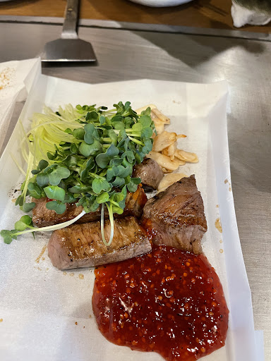 Upon the first bite, the beef practically melted in my mouth, delivering a rich, buttery flavor that was both savory and subtly sweet. The texture was incredibly tender, almost creamy, making it a unique and indulgent treat. Cooked to perfection by skilled chefs, each piece was seared on the outside while maintaining a succulent, juicy interior. The accompanying sides, including lightly seasoned vegetables and a robust red wine sauce, complemented the beef without overpowering its natural flavors.