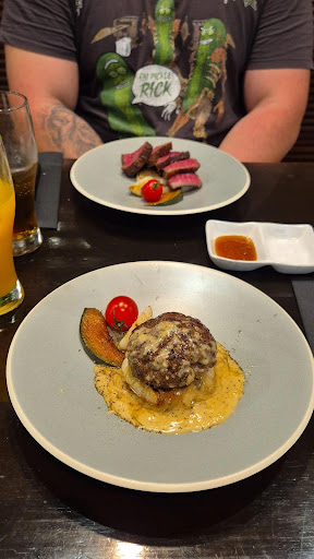 The food was 10/10. Iโve never had beef that good. I personally got a 200g sirloin and the โhanbergโ. The meat was juicy, flavorful, and melt in your mouth. It wasnโt cheap, but it was less expensive than the train side locations and was worth every penny (yen lol).
