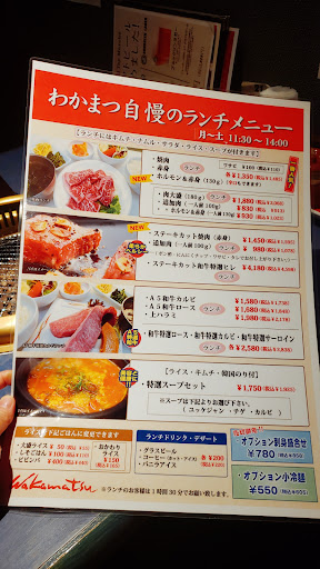 神戸市須磨区と垂水区に2店舗展開されている『わかまつ』さん、名谷店です。 どこか懐かしくそしてちょっと変わった外観。 焼肉屋さんは、ただ値段が高いだけだったり、安いのは良いけどあまりに肉の質が悪かったり・・・本当にお店選びが難しいですが、こちらはお肉と価格の「バランス」が納得できるお店です。須磨区に独自の工場をお持ちで、「バランス」の秘密がそこにあるかと思います。 お肉は黒毛和牛A5ランクを中心として、豊富に展開されています。希少部位もありますので、毎回飽きる事がありません。 また、海鮮も力を入れられており、刺身の盛り合わせはあまりハズレがありません。 キムチ(白菜・大根・キュウリ)・サラダ・チヂミなどの一品から、雑炊・ピビンバ・クッパなどのご飯もの、スープ、冷麺など豊富に揃えられています。 小さなお子様には、3色おにぎりがおススメでしょうか。 すき焼き・しゃぶしゃぶなどの鍋物はまだ試したことがありませんので、いずれ挑戦したいと思います。 デザートの天然果実をくり抜いて作ったシャーベットは、大きなサイズですので、小学生位のお子様では全部食べ切れないと思いますので、ご注意を。 お会計では、「あれ?ちょっとだけ高くなったかな?」という感覚がありました。そういえば、メニューがちょっとリニューアルされていたような・・・ それでも、食事の内容を考えましたら十分満足の内容です。 またお伺いしたいと思います。 by...
