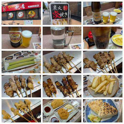 焼鳥、串カツ、何食べても美味しく活気のあるお店(˘︶˘).。.:*♡ 創業昭和34年、福井県発祥のやきとり屋さん♪ 現時点で103店舗位ありますが、兵庫県には相変わらず4店舗のみ(武庫之荘店、園田店、明石店、こちら兵庫駅前店)