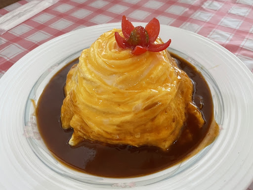 三度目に伺った際はオムライスを。 外の幟に〝オムライス〟と書いてあるのを見て「次回はオムライスにしよう」と決めていたのです。 ここのオムライスを食べると他所のオムライスは食べられませんよ。 トロトロの卵に少し甘めのソースが◎