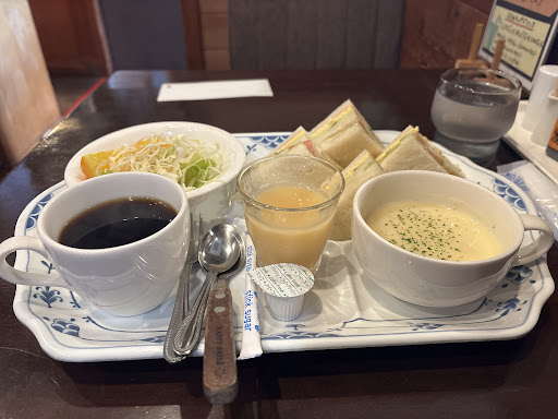 Read moreモーニングが11時30分まで。落ち着いた雰囲気でお気に入りのお店で近くに来たら必ず寄ります。モーニングに小さなグラスにジュース、ヨーグルト(orゆで卵)ポタージュスープも付いてきてコスパが良い! ミックスジュースも50円UP。 お店は混んでて待つこともあるが(入り口にも貼り紙)人件費をかけずにステキなモーニングサービスを提供している。 ご年配の方のウエ...