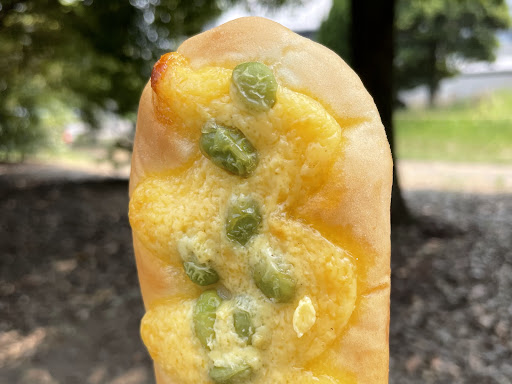 自宅用のパンを求めて車で訪問。リスの絵の看板が目に入り店前になんとか駐車、ちょっと狭い…🐿️店先にはパン屋さんらしいかわいさと、どこかメルヘンな雰囲気が漂っています。 トングで好きなパンをトレーに取るセルフスタイル。ざっと20種類ほど並んでいて、おかず系からおやつ向きまで幅広いラインナップです🥖。今回はその中から「枝豆スパイスチーズ」をテイクアウト!丁寧に袋詰めしてくれました。 あ、これはなかなかリッチな味わいです。スパイシーなチーズとマーガリンの風味が前に出てきます。一方、枝豆は控えめでパン生地もあくまで舞台裏といった印象。なので、全体の調和はそこそこで食感ものっぺりとしています。組み合わせとしてはかなり良さそうだっただけに、惜しいところ…🫨 支払い方法は現金のみです。テイクアウト専門店となっており、店内に座席はありません。多くのパンはビニールで包まれていて、衛生面での配慮がありました。 今回は「すごい美味しい!」とまではいきませんでしたが、ここには試すべきパンがまだまだあると思...