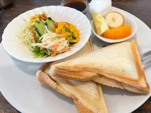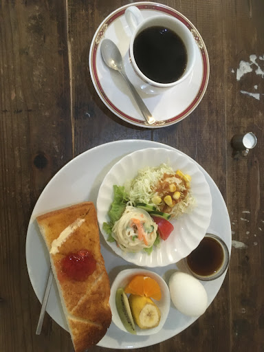 Read more「ホットサンドモーニング」を注文。あ、想像以上に賑やかなワンプレートですね!ホットサンドは2種類で、それぞれ異なる具材が楽しめます。1つは、マスタードの風味がほんのり効いたオーソドックスな卵ペースト。もう1つは、ザク切り野菜が食感を引き立てる爽やかなトマトソース。さらに、フルーツやコーヒーゼリーまで付く贅沢なセットで、朝から満足感たっぷりでした✨。 扉を開けると、外装と同様に店内も素朴な空間が広がり、気取らない雰囲気のスタッフが迎えてくれます。オープンキッチンの前には木製のテーブル席がゆったり配置され、雑誌や漫画も置かれているため、ひとりでも退屈せずに過ごせます📚。高齢の方やおひとり様が静かに朝の時間を楽しんでいる姿が印象的でした。 支払い方法は現金のみです。清潔感は十分あり、お手洗いは快適な洋式トイレです。 高知市の「穀雨」は、美味しくて充実したモーニングを楽しめるカフェでした。ただ、特別感というよりは、日常に寄り添う穏やかな一軒。肩肘張らずに過ごせる、そんな魅力...