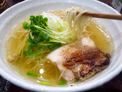 It's a small ramen store located in the shopping district of Obiyacho 1-chome. There are about 30 seats, with table seats at the entrance side and counter seats at the back side, but the seats are lined up very tightly against each other. You'll need to purchase a ticket from the ticket machine at the entrance. Not only Ramen but also Abura-soba (Noodle dish with no soup and only a small amount of sauce) is on the menu, but the main is the Ramen with amber-colored salty soup. The soup is light, but not too salty, and the noodles are well coated with it, leaving no aftertaste. The thin noodles are also firm and chewy. The seafood-based ramen has a fishy smell that divides people's tastes, but you don't feel it at all in this ramen. I think women in particular will like it. Tai meshi (rice bowl mixed with steamed sea bream) that comes with the set menu can be eaten on its own, but I felt it was a bit lacking. After you finish the Ramen, you can pour the leftover broth over it like Ochazuke for a...