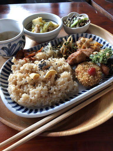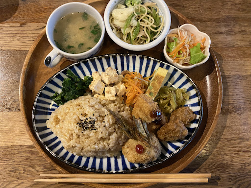 2025.3.15(土)現在 玄米ランチと食後のコーヒーとケーキを頂きました。 玄米ランチ950円です。 おかずの種類が豊富で選ぶ楽しみがあります! そして、どのおかずも素材の味を活かした優しく、繊細な味でとっても美味しかったです♪