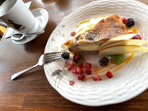 Read more「古風なアフターヌーンティーは世代を超えて心をつなぐ」 珈琲クリームのバナナケーキにブレンドコーヒーを添えて注文しました。このケーキは、きめ細かいふんわりとしたスポンジ生地がバナナペーストの優しい甘みを包みこむ、上品な逸品でした。ブレンドコーヒーはケーキの甘みに負けないようリッチな風味に仕立てられています。ケーキが潰れやすいのはやや難点でしたが、居心地の良さも素晴らしく、充実したティータイムを過ごすことができました🍰。 午後3時前に訪れたところ、店内はおやつを楽しむ人たちで賑わっていました。客層は女子会や男子会、カップル、子ども連れ、高齢者と非常に多彩で驚きました。レトロなログハウス風のインテリアは居心地も良く、若い女性のスタッフにより明るい雰囲気が保たれています。座席は禁煙席と喫煙席で完全にセパレートされていて、どちらのお客さんも快適に過ごすことができます。テーブル席は約10個あり、入店後すぐに座ることができました。 支払い方法は残念ながら現金のみです。清潔感は十分にあり、お手洗いはきれいな洋式トイレでした。フリーWi-Fi🛜があるのも嬉しいですね。 ケーキの種類が豊富で、4つほどの候補に迷いました。次回は別のケーキも試し...