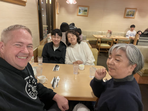 Super friendly staff, bottomless mimosas - not, not really. All you can drink coffee, matcha, cocoa, soda, juice, even soup. Beer and high-balls too if you aren't driving. Fries, edamame, burdock root fries that remind one of artichoke... steak in chunks, shrimp tempura, donuts & cheesecake, curry n rice, omelette, western brekky, spaghetti for those back-home cravings, hamburger plates minus the bun, udon, salads, chicken, even Alfredo type casseroles. Billy Joel & Mariah Carey type muzak. Open 24 hrs. Strong WiFi. Wheelchair accessible. Smoking section but non-smoking section isn't smokey usually. Maybe half a mile from the train...