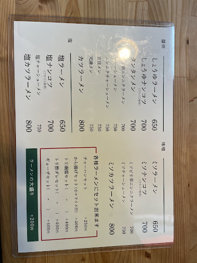 味は まずは味噌ラーメン スープは普通。麺はソーメンくらいの太さ。 インスタントの麺みたいでスープに合ってない。 焼き飯は、具は卵だけかと思ったが、少しハムより薄い肉片が入っていた。味付けは薄くてまずい。 餃子はほぼ焦げてたが、普通のうまさ。 1番ビックリしたのが味噌カツのカツ。 薄いのに硬くて噛めない。 古いのか臭くて食えない。 こんな不味いカツ初めて食べた。 お客さん来ないからずっと冷蔵庫に入ってたのか、臭い肉を平気で出すなんて信じられん。 味噌カツラーメンは何店舗も食べたが、間違いなく最低に不味か...