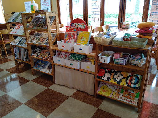 子供連れの客層にも対応できるように、 子供向けの絵本やおもちゃがあったり (ふだんよく行く店舗でも絵本など置いている)