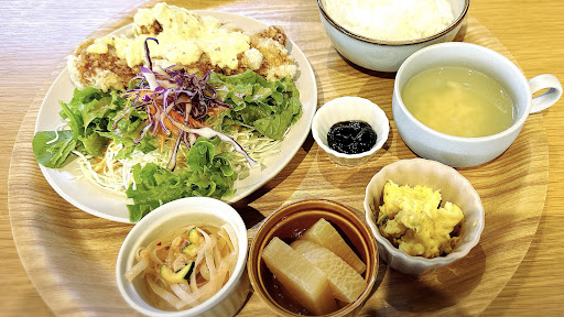 Read more雰囲気はいいです、雰囲気は。 混雑時に行ったせいかもしれませんが 注文してから提供まで1時間近く待ちました。 休祝日であればどのくらいかかるか、分かるはずなのに何も案内されず、言われず、ただただ待たされるのみ。せめて一言あればなぁ……。 小さい子を連れていったのですが、最初に出された水はガラスコップ。 そこは別に良かったのですが、提供時に、お子様用のお待ちしましょうかと言われ え、子供用あったの?!と今更感 あるなら最初から出してくれ? 食事はボリューミーでした。 ただ、メインの揚げ物の味付け濃ゆいっ。副菜味ない!見た目いいのに味の無さに思わず笑顔に。 あと、ピッチャー。ほかのテーブル席にはあるのに、自分のとこなかった。なぁぜなぁぜ。 あぁ、あと満席だから入口で待ってたんだが、待機用の椅子はないので、立ち待ち必須。 駐車場あるんだから、せめて車で待てるような環境であればよかったネ。 待ち時間尋ねても、お客様次第ですのでわかりません即答! いや、分かるけどね?言い方な?大体の時間でいいのよ大体で。40分かかるかもとかで。