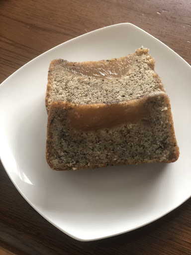 紅茶とリンゴのパウンドケーキはしっとりとしており、ホロホロと崩れるタイプでした茶葉が凄く入っていたので茶葉の固い食感が邪魔になるかな?と思いながら食べたら全く気にならず紅茶の香りも凄くよくリンゴもタタンみたいにしっか煮てある果肉が入ってあり250円と高いですが手間隙かけてそうだったので納得の値段でした。