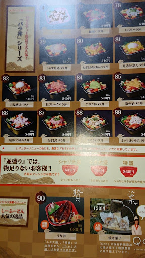 Read moreこちらは、まず注文をして代金を支払い出来上がりを待つというシステム。種類が多く、初めての時はすぐには決めかねるので、できれば入店前に店頭にあるポスターを見ておくことをオススメします。種類が多いわりに、商品の提供までにかかる時間はさほど長くなく、店内のポスターを見ているうちに出来上がります。具がけっこう盛りだくさんで、満足感があります。ごはんは薄味の酢飯で食べやすいと感じました。価格はほぼ500円に消費税で、うな丼やスペシャルバージョンになると680円プラス消費税と、比較的買いやすくなっています。お好みのネタをプラスすることもできますし、ごはんの大盛も可能です。駐車場もあるので、便利...