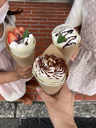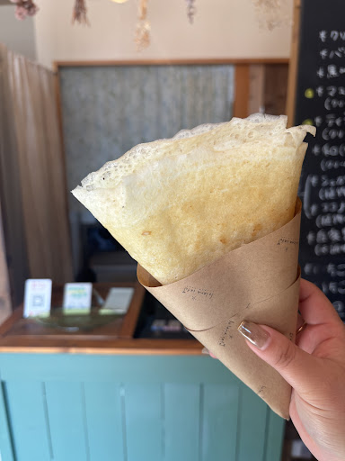 バナナ生クリーム→チョコソースのクレープを注文。 一口目→香草の香りが口に広がる刺激的なクレープ。。かと思いきや、一瞬にして、唯一無二の“米粉生地“と優しくて繊細な生クリームがフワッとモチッとを奏でながら→溶ける。バナナも最後までしっかり存在感!とても魅力的で美味しくて大好きになりました!