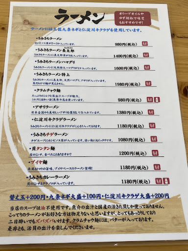 Read more高知旅行2日目は高知市内から少し離れ、桂浜へ。バス停を降りてすぐ、観光スポットの桂浜や坂本龍馬像、記念館などへ向かう手前にある桂浜海のテラス内にあるお店です。2023年にオープンしたばかりということもあり、店内は清潔感あり、日曜日の昼時でしたが特に混んでもいなく案内もスムーズ。ファミレスのようなボックス席やロングテーブル席、カウンター席など様々な人数にも対応できそうで、フードコートのような雰囲気。 今回のお目当てであり、お店のウリはラーメンですが、ご飯ものや網焼き、一品ものもランチ帯から充実。ただ、私は迷うことなく仁淀川キクラゲラーメンを選択。最初はうみさちラーメンにキクラゲ大盛を追加しようとしたのですが、店員さんからキクラゲラーメンにも貝が乗っていて、お得と教えて頂きました。