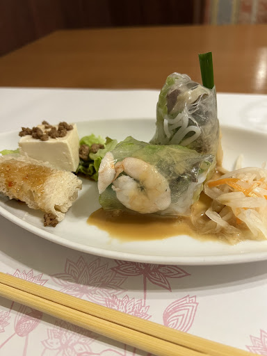 ランチセットを頼んだのですが、前菜の春巻きから、焼き飯、そして海鮮のフォーまで、どれも美味しく、しっかり満腹になるほどのボリュームでした。 ミニデザートも可愛らしい見た目とともに美味しかったです。