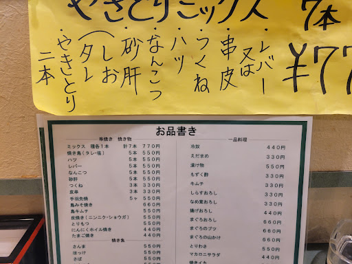 Read more老舗の鳥料理店未だにねぎま一本80(税抜き)円の昼間から仕込みした焼き鳥などをはじめ皆様の舌を満足させてくれますよ(^-^) タレもこの道何十年の熟成された継ぎ足しの旨味が凝縮されたお宝のタレ‼️ こんなに安くて、美味しくて、超ハイクオリティな良心の塊のような店はそうそう無いでしょう‼️ 何を食べてもここは必ずや皆様の舌を満足感で...