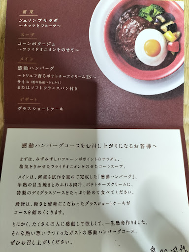 2022/7/29 金曜の夜は混んでいた。ねこロボットが大活躍していた😆 2022/7/25 ちょっと遅めの土用の丑の日のうなぎを食べに行った😅 2022/6/11 メニューブックがリニューアルしていて,何処の高級店かと見間違う程だった。確かに,ハンバーグは,ちょっとグレードアップした感じがする。 2022/4/5 日替わりランチ,値段が値段なのでしょうがないかもしれないけれど,写真と違うです😅