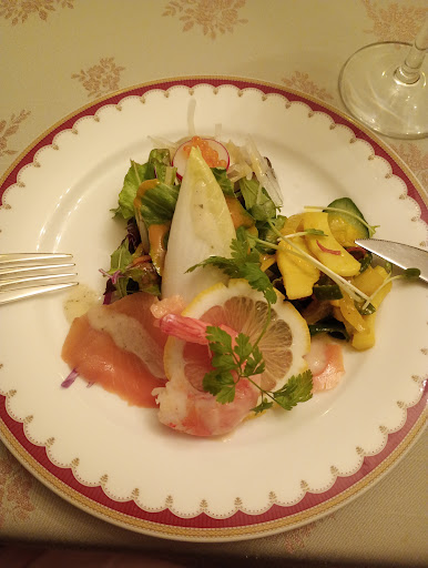 お料理も文句のつけようがなく、主人と料理の味はもちろんお料理の温度が計算されているよねと感動しました。スープが熱すぎず冷たすぎず口に入れた瞬間に味わうのに最適な温度。(写真を撮り忘れてしまいました) メインは魚料理を選んだのですが、身がふわっと柔らかく隠れていたトマトソースで2度おいしい! ま...