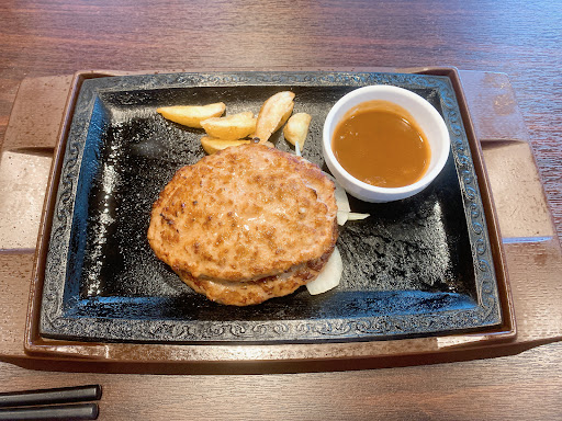 ハンバーグは、肉々しいという感じではなく、さっぱりとした感じで食べやすかったです。 途中で、付属のハンバーグソースが足りなくなったので、テーブルに置いてあった、和風たまねぎソース、にんにく醤油のソースの2種類とも使用してみましたが、個人的には、にんにく醤油ソースの方が好みの味でした。