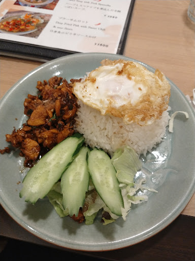 Very nice little Thai place! The green curry and pad kra pao are excellent. But neither dish is for the faint of heart... they are both VERY spicy! The soup that comes with the lunch set is also delicious and a welcome break from the onslaught of firey peppers that seems to be present in most of the other dishes. Don't get me wrong... the spiciness is wonderful, but just be prepared for it. You can ask to have the heat tamed a bit, but it does come at a cost in flavor. If you can manage spicy, order and eat as the chef intends the dishes to be. The only complaint I have is with the prices. Lunch will run you 1300-1500 yen a person, and dinner is considerably more. If it weren't for the high prices, I'd give the...