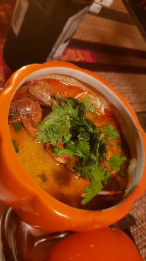 トムヤムクンは金額的にはちょっと高め?1500円くらいだった記憶?だけど、本場の味、プロの味。ふくろ茸やエビなどの濃厚な出汁が取れている感じ、ナンプラーやタイの辺りのラー油、ココナッツミルク系のトムヤムクンで濃厚そのもの。まるで薬膳のような旨さであった。
