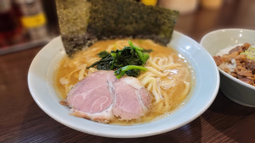 Read more【撃トンラーメン(⼀撃)】 久しぶりの雷家。辛いラーメンが食べたくて、今回は初めて「撃トン(⼀撃)」を選びました。麺の硬さ・油の量・味の濃さはすべて「普通」で注文。 卓上にはおろし生姜も追加されており、もちろんおろしニンニク、豆板醤、胡椒、すり胡麻も完備。ただ、刻み玉ねぎが見当たらない…。よく見ると、トッピング扱いに変更されていました。 スープは「普通」でもしっかり濃いめ。唐辛子の香ばしさとほのかな酸味が絶妙で、辛さも程よいバランス。これなら「二撃」でもいけそうです。雰囲気としては山岡家の辛味噌ラーメンに似ていますが、こちらはその醤油版といった印象。豚骨のコクも濃すぎず、ちょうど良い仕上がりで、とにかく旨いスープです。麺は以前と変わらず、安定のおいしさ。チャーシューは薄切りながらとても柔らかく、麺と一緒に食べても邪魔にならない。スープとの相性も抜群。海苔の磯の風味も良く、スープにしっかり合います。ニンニクや生姜を加えて味変も楽しめ、これまた旨い。刻み玉ねぎはぜひ追加トッピングしたいところ。スープをご飯にかけて、お茶漬け風にしても絶対旨いはず。 連れが頼んだ醤油ラーメンも少し味見しましたが、以前の白濁系豚骨から変わり、醤油が前面に出た味に。初期の家系ラーメンを思わせるような方向性で、個人的には今の方が好みかもしれません。 美味しかったです...