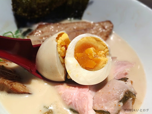 豚骨ラーメンですが、豚臭くもなく、濃厚かつクリーミィで、後味に貝の旨味や風味が口に広がって かなり食べやすかったです!