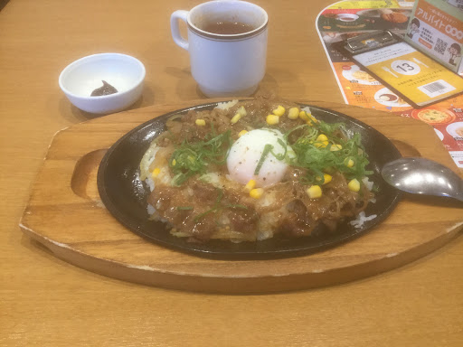 2023/12/8 ランチ訪問。混んでる。駐車スペースをやっと見つけて入店。ビーフシチューっぽいモノが食べたかったので,包み焼きハンバーグにした。ちょっとお高くついたランチだった。 2023/10/26 ランチ訪問。入店直後から混み始めた😲 牛カルビライスを注文。鉄板熱々で美味しかった😆 今日のスープバーは充実していた👍 2023/1/18 ランチ訪問。相変わらず混んでいる。13時を回ったところだったので,そろそろ入れ替わる時間帯といった感じ。散々迷った挙句,ランチミックスフライにドリンクバーセットを注文。スープバーは,中華スープが入れ替えの為カラでトマトスープも煮詰まったモノがほんのちょっぴりあっただけだった😢 注文品が来て,カトラリーケースを覗いたら,フォークが入ってなくて,箸で食べた。今回は,ちょっと脇が甘いなぁと感じた。